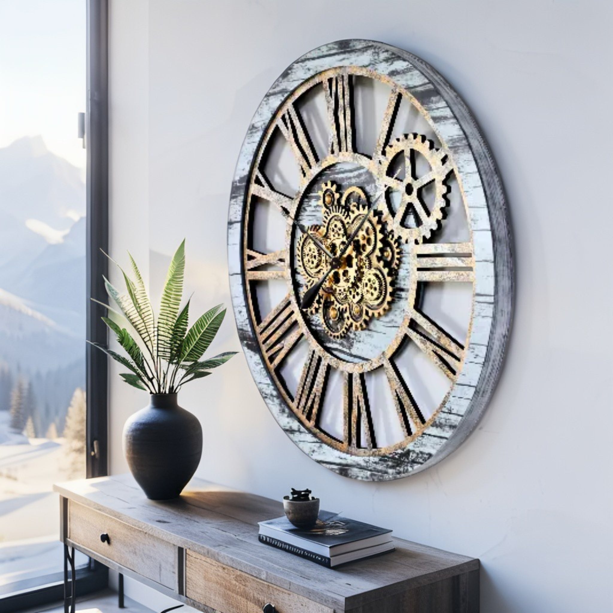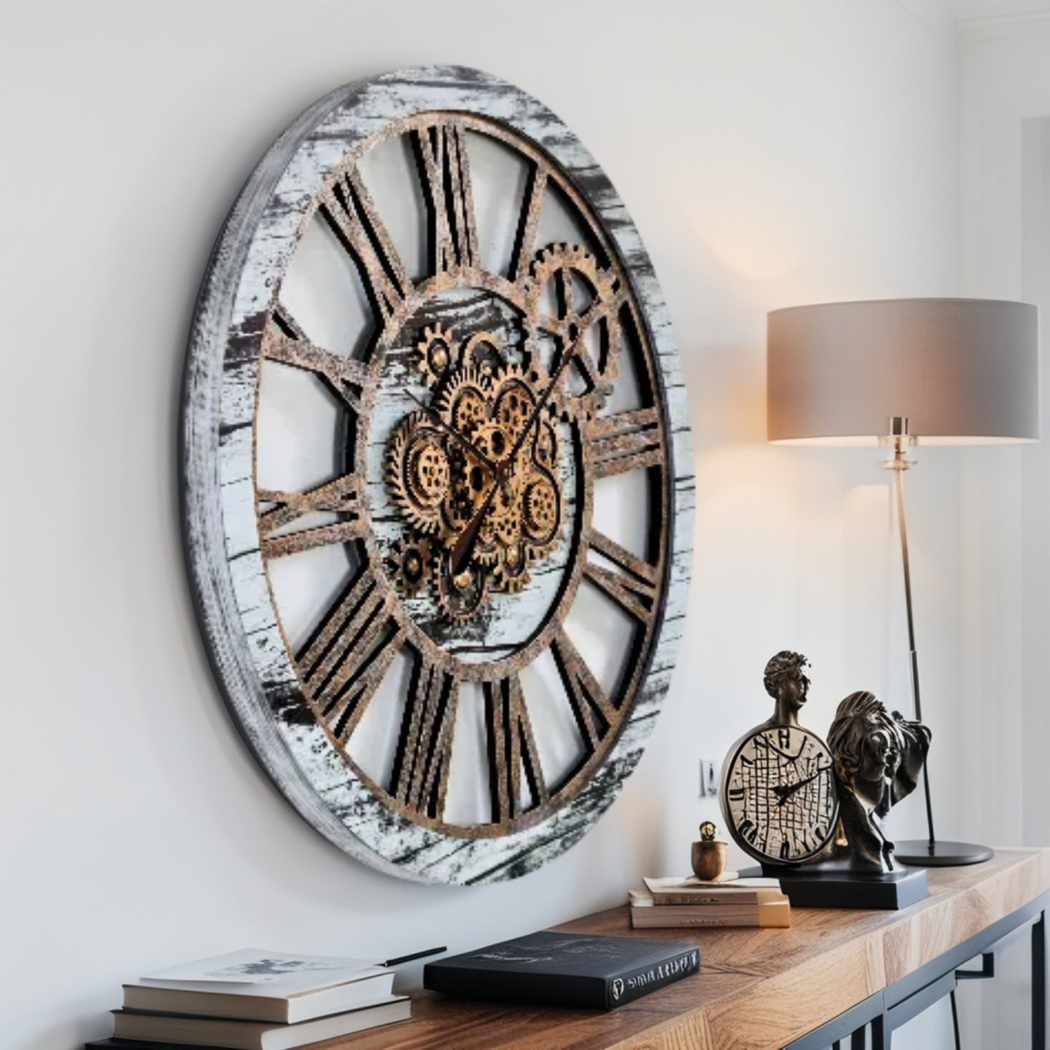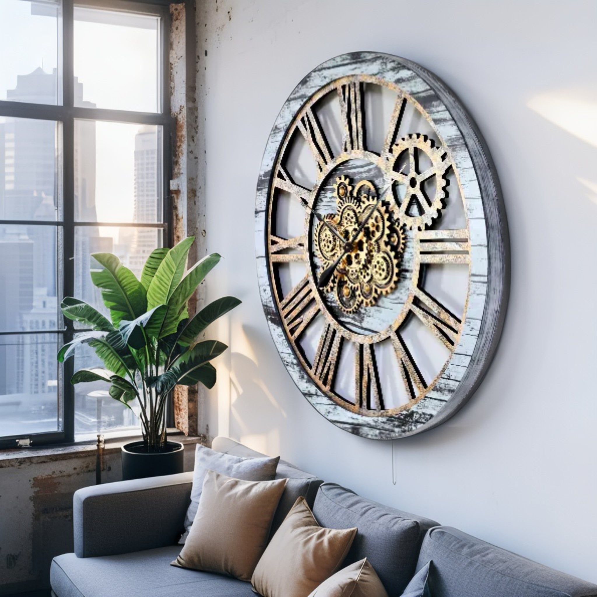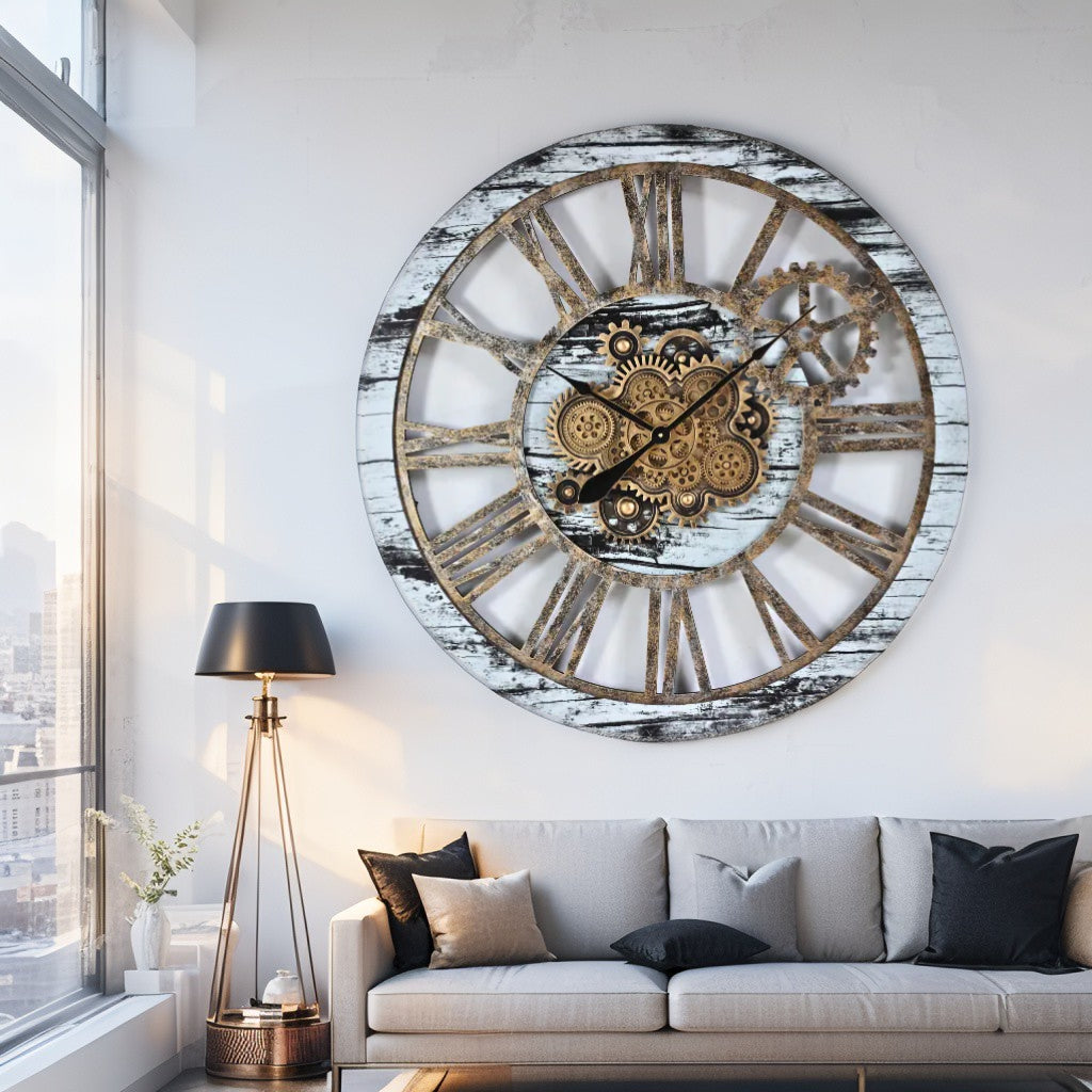 - PERFECT FOR ALL ROOMS | This unique Industrial vintage Steampunk Real Moving gears clock is the perfect clock to dress up a wall in your kitchen, living room, bedroom, bathroom, family room, den, office, Restaurant, Workplace......anywhere!