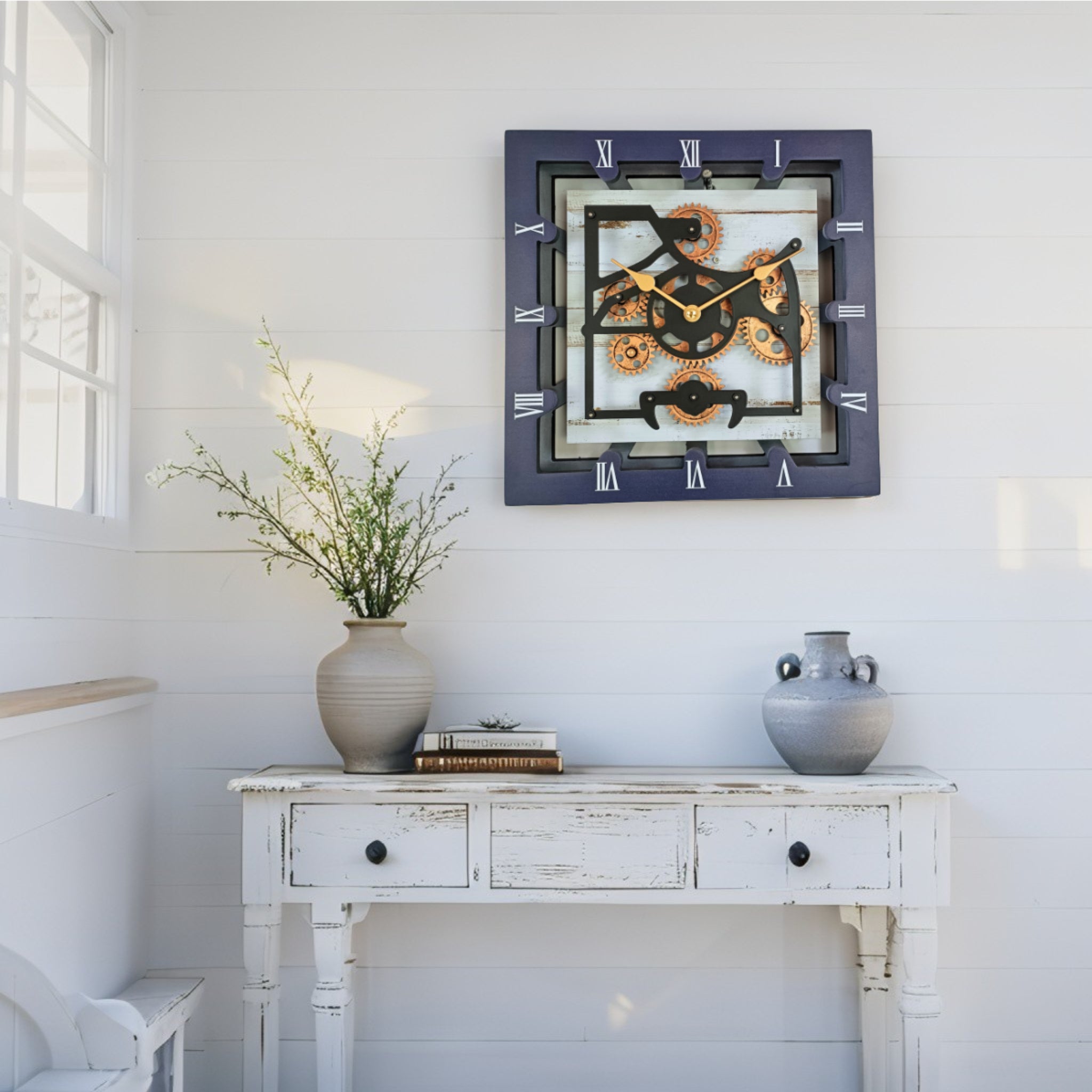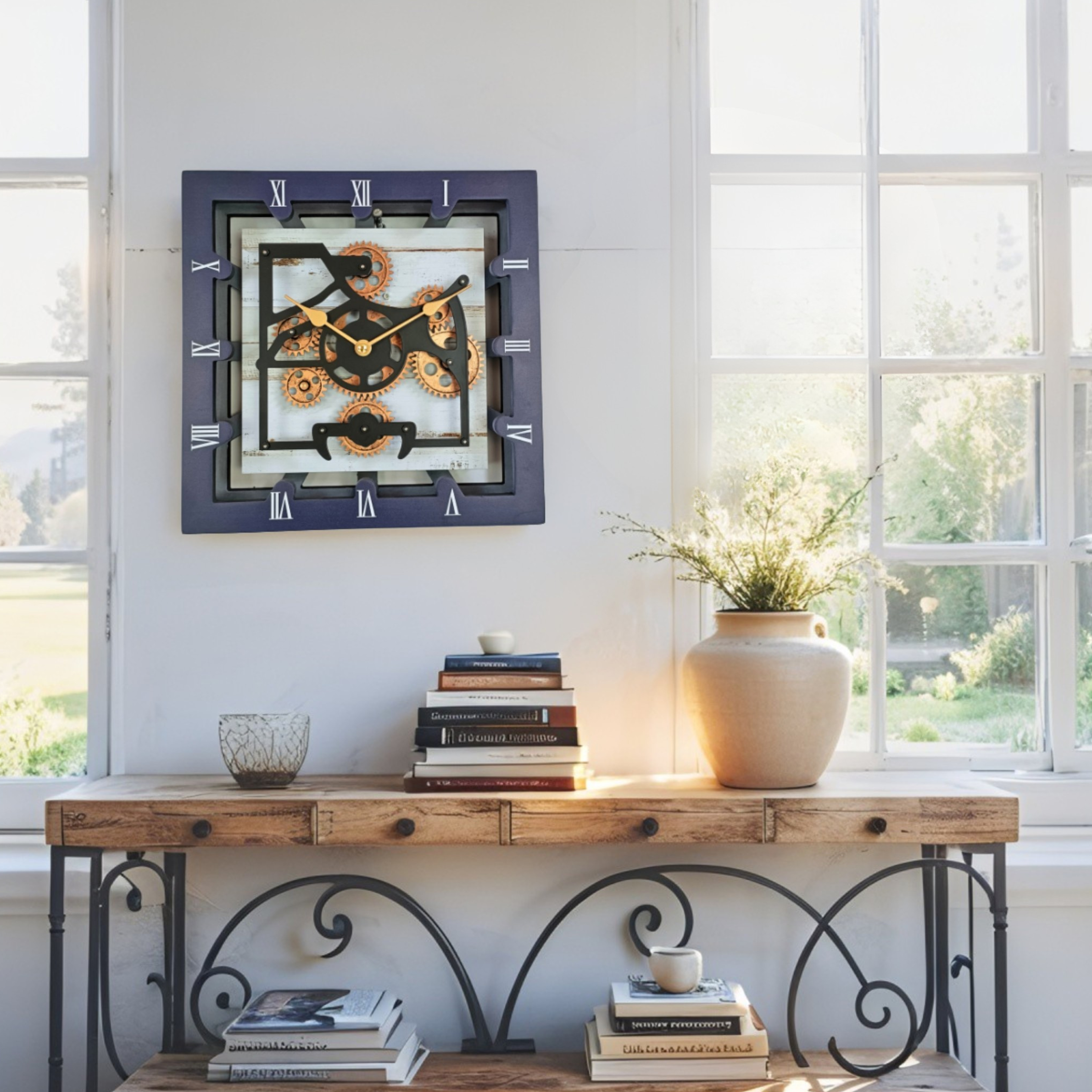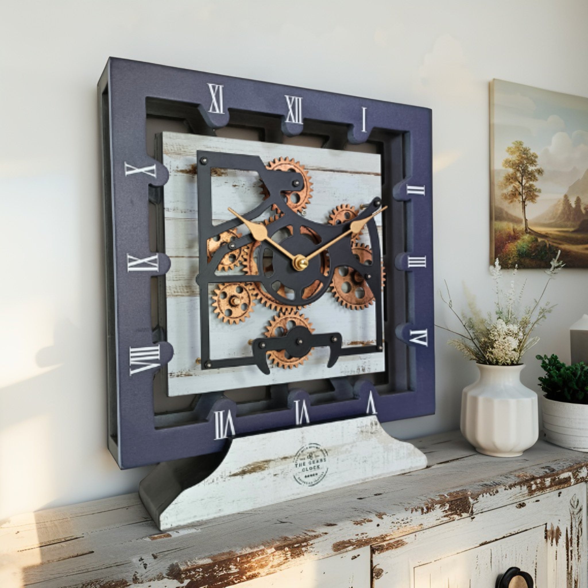 - PERFECT FOR ALL ROOMS | This unique Industrial vintage Steampunk Real Moving gears clock is the perfect clock to dress up your countertop or your wall anywhere: entryway, office, living room, kitchen, bedroom, bathroom, family room, den, office, Workplace......anywhere!