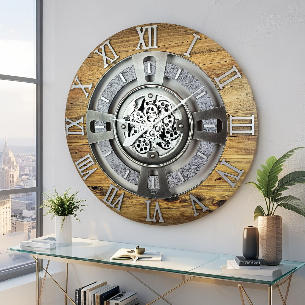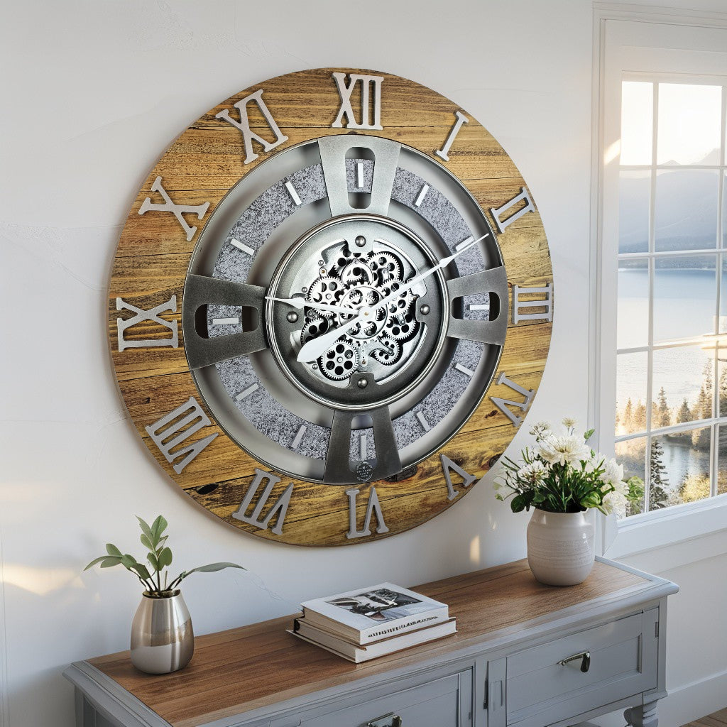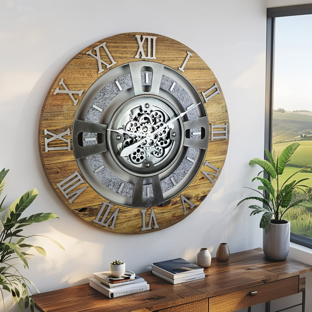 - QUALITY | Made using high-grade materials to ensure the clock’s durability. The Frame of the clock is made of 2 circle of fir wood, connected eachother with 4 joint of Metal in Silver color. We have recently improved the manufactory assembly standard, the packaging protection, and the entire handling process, to ensure the best quality possible.