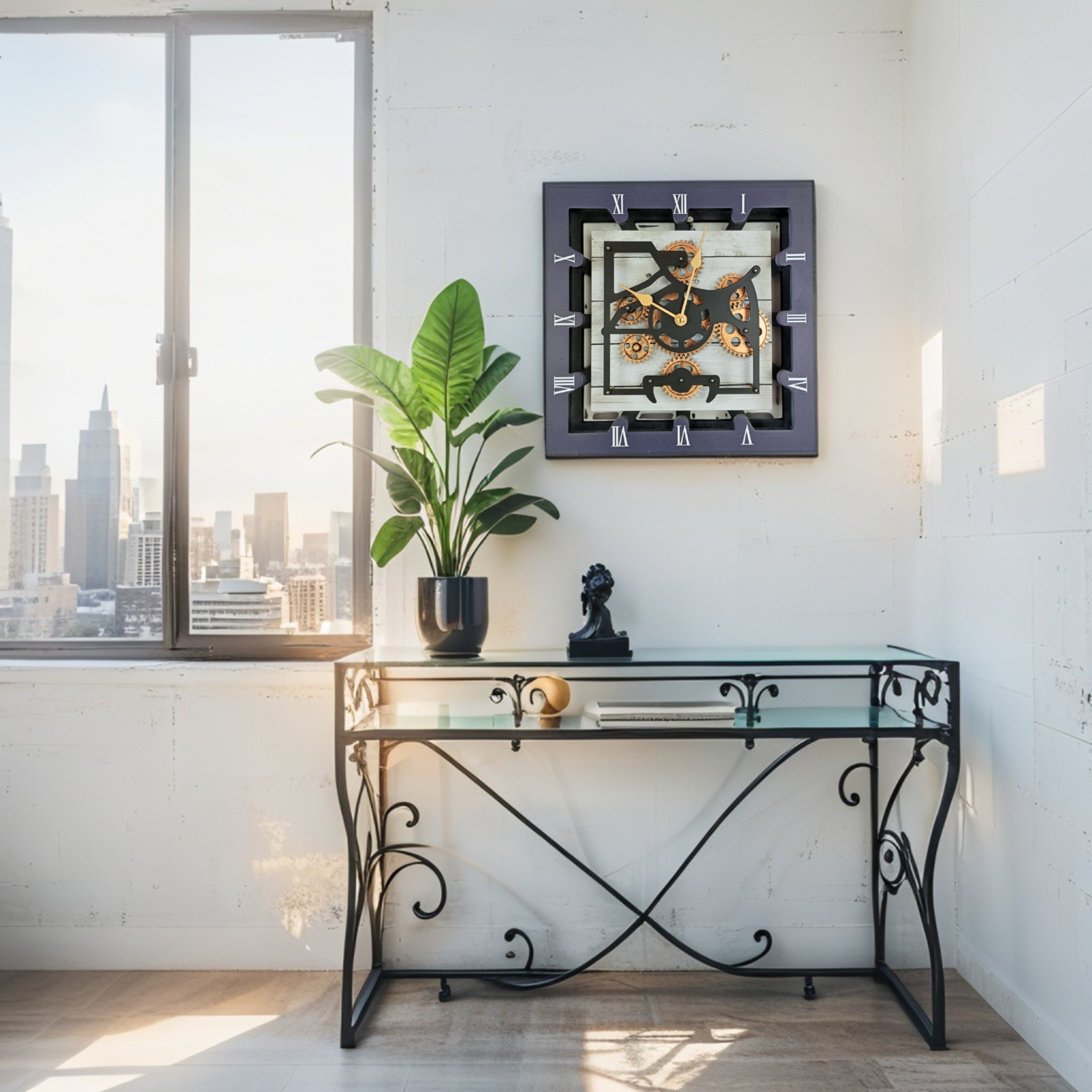 - PERFECT FOR ALL ROOMS | This unique Industrial vintage Steampunk Real Moving gears clock is the perfect clock to dress up your countertop or your wall anywhere: entryway, office, living room, kitchen, bedroom, bathroom, family room, den, office, Workplace......anywhere!
