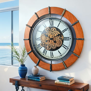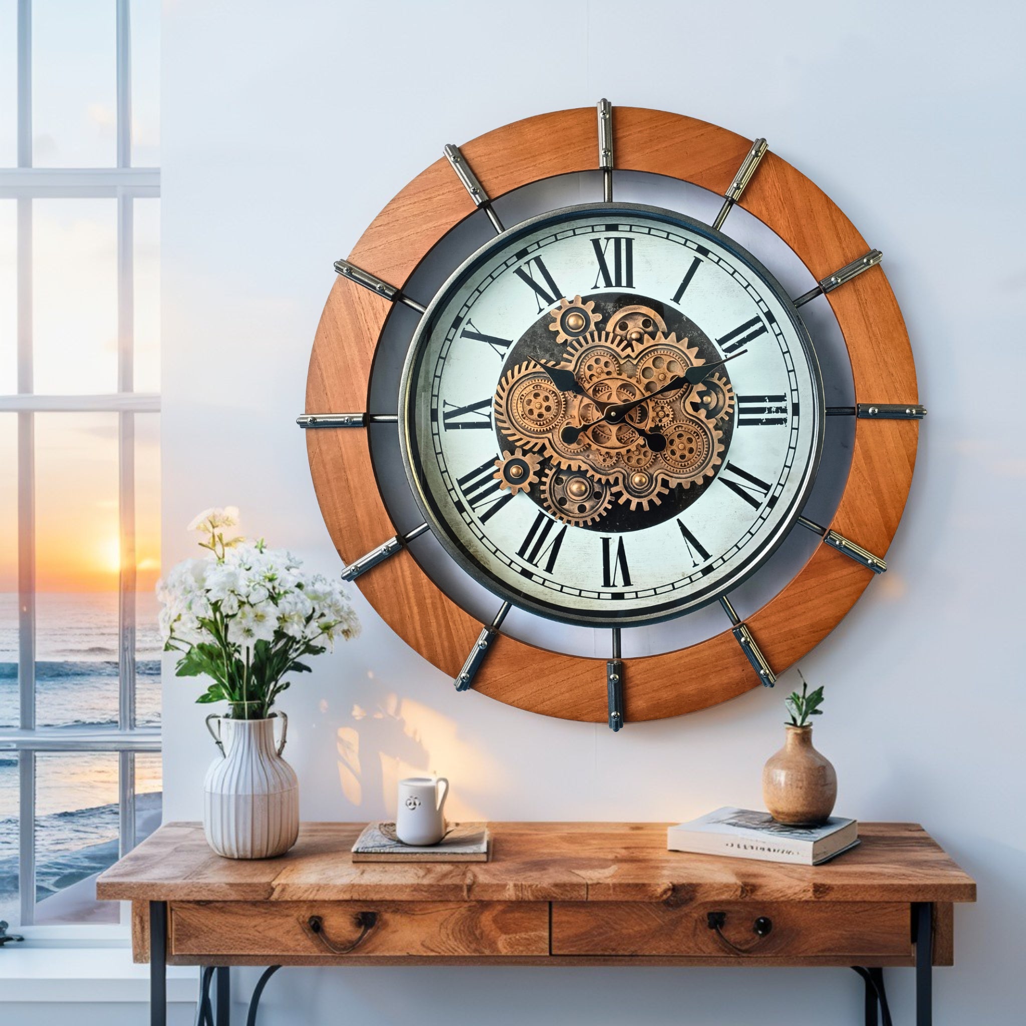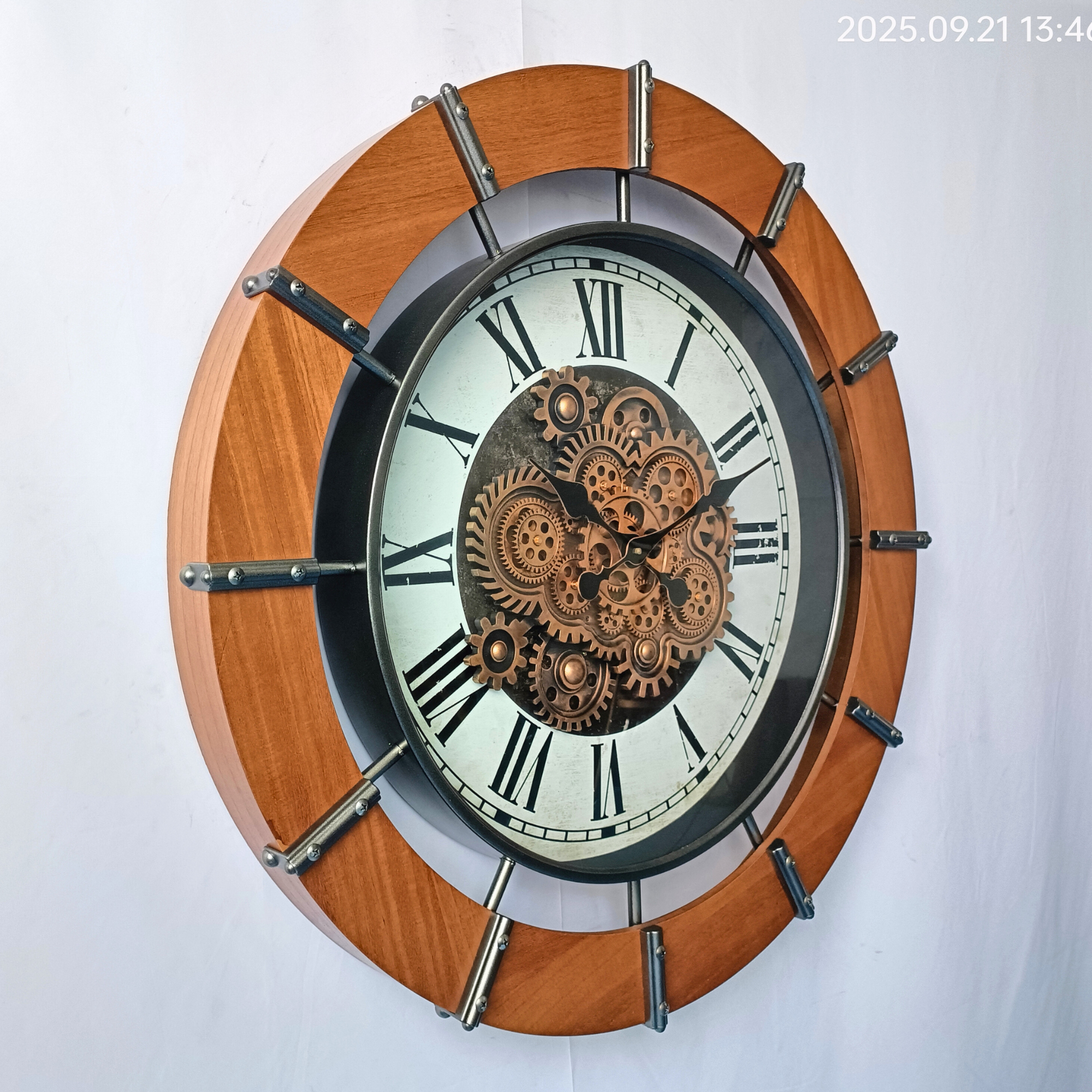 MATERIAL: metal bezel & hands; engineered-polymer gears; wood-look outer ring; high-resistance glass.