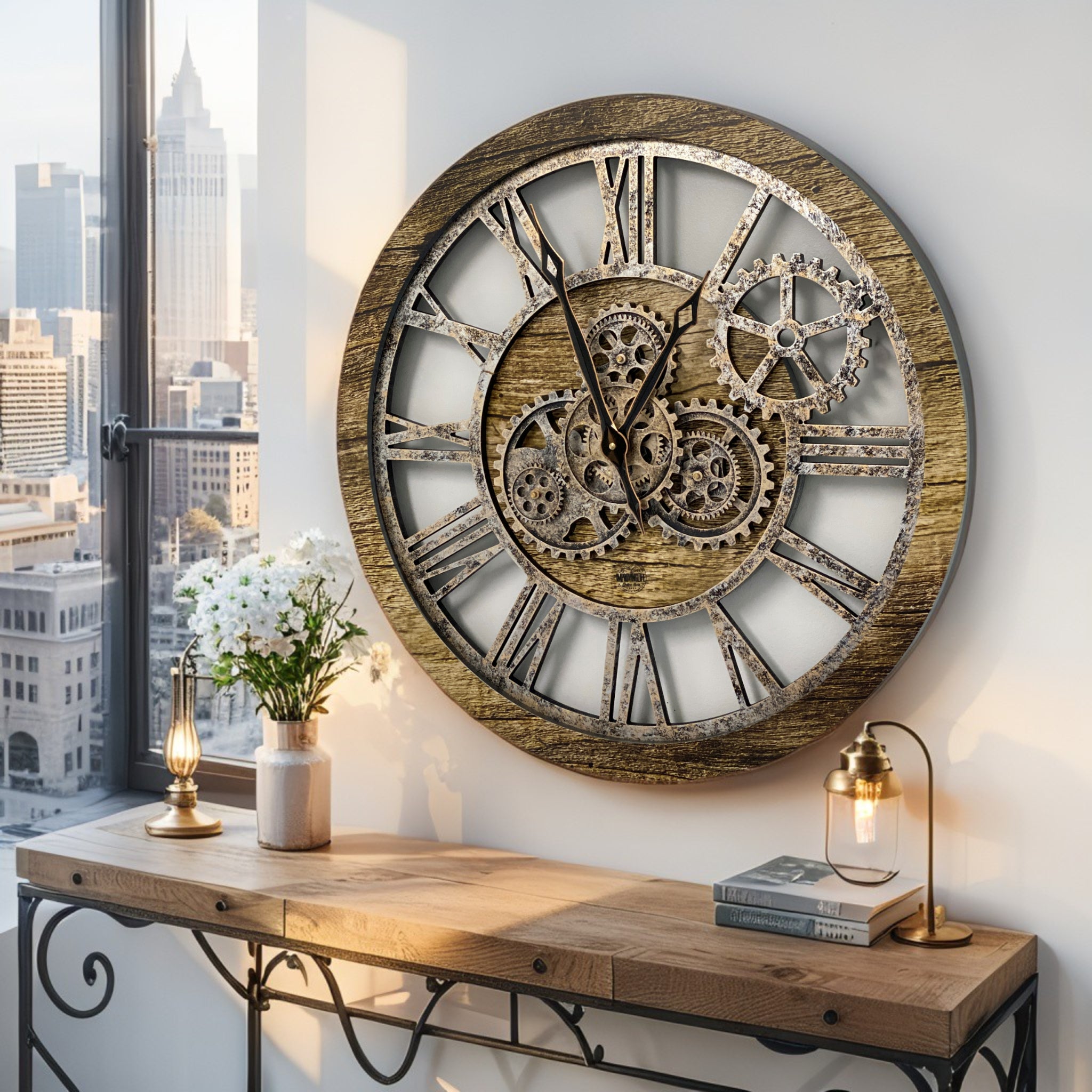 - PERFECT FOR ALL ROOMS | This unique Industrial vintage Steampunk Real Moving gears clock is the perfect clock to dress up a wall in your kitchen, living room, bedroom, bathroom, family room, den, office, Restaurant, Workplace......anywhere!