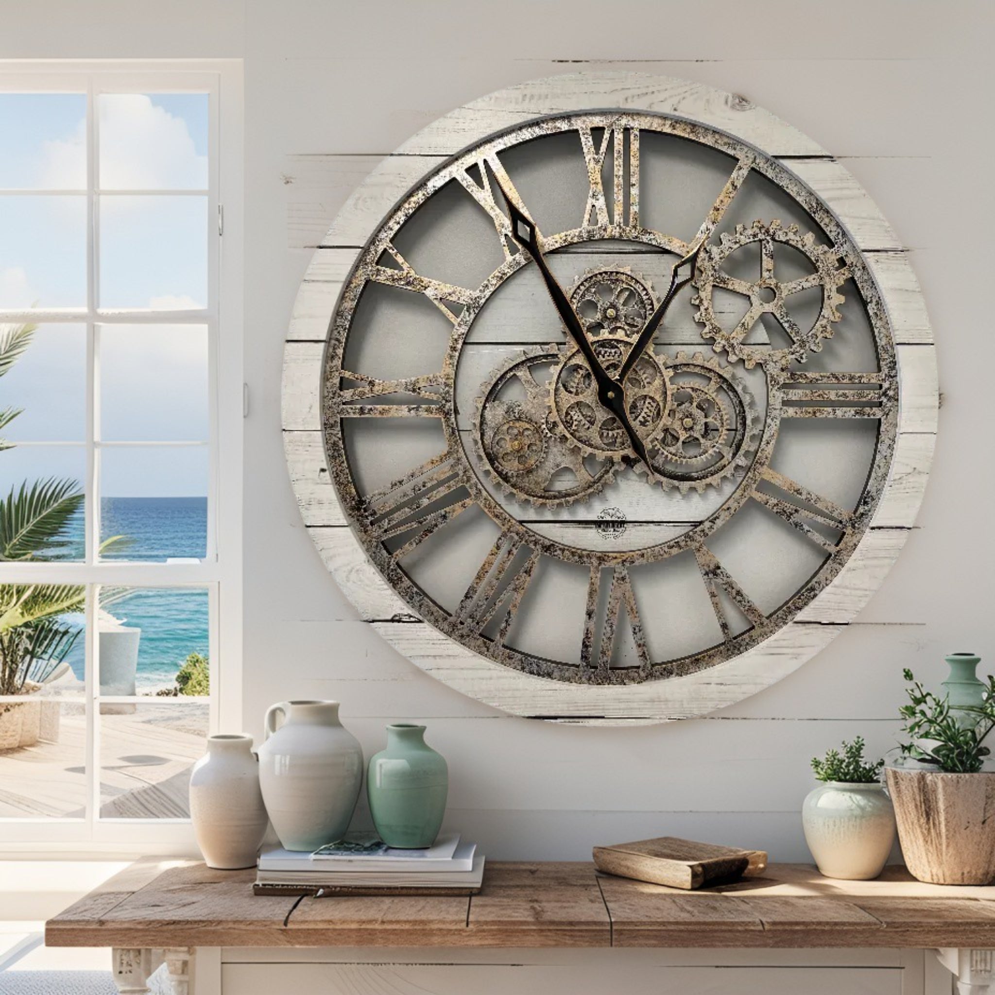 AMERICA LINE WALL CLOCK ROUND 24 INCH WHITE FARMHOUSE