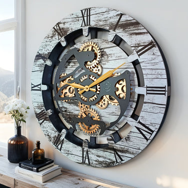- PERFECT FOR ALL ROOMS | This unique Industrial vintage Steampunk Real Moving gears clock is the perfect clock to dress up a wall in your kitchen, living room, bedroom, bathroom, family room, den, office Restaurant, Workplace......anywhere!