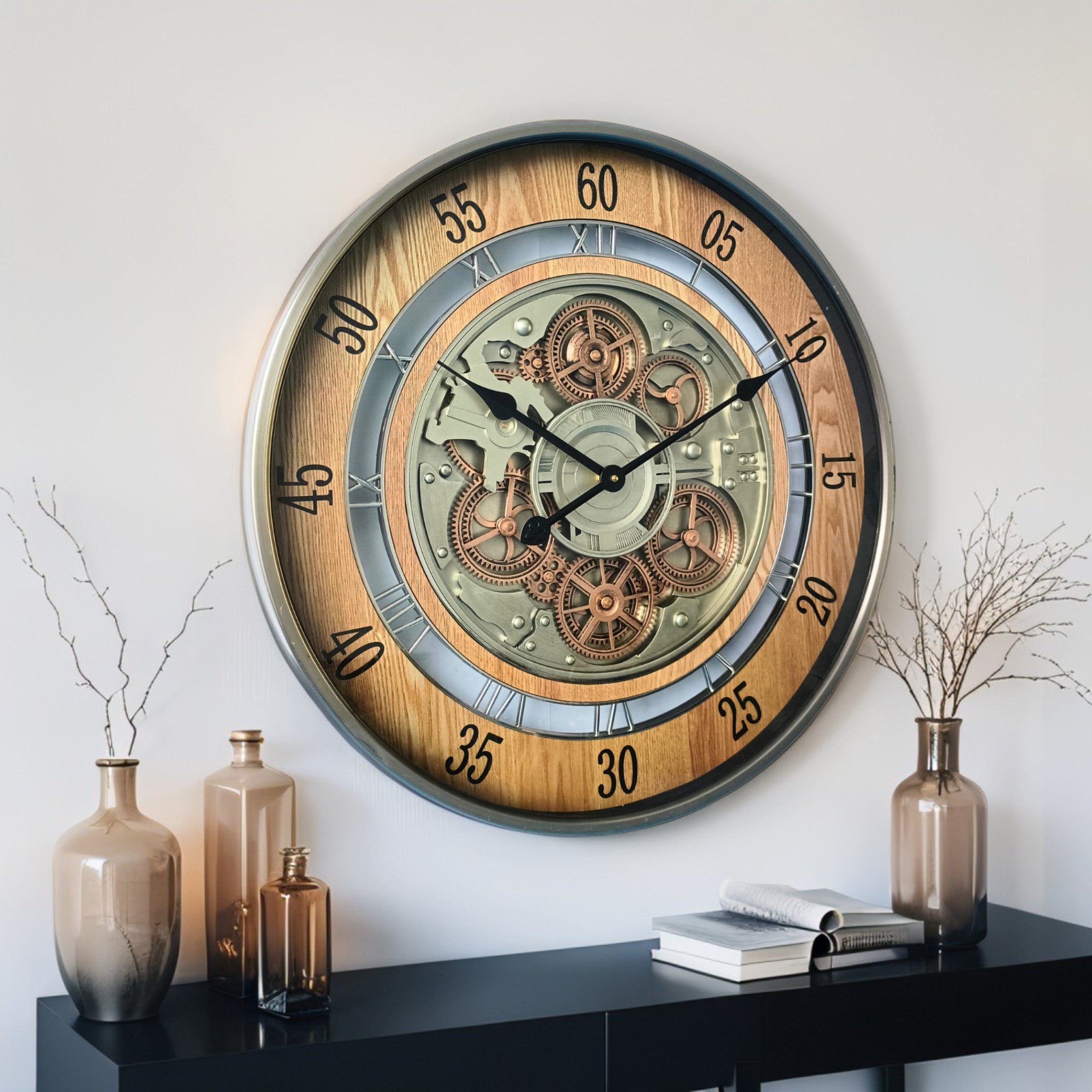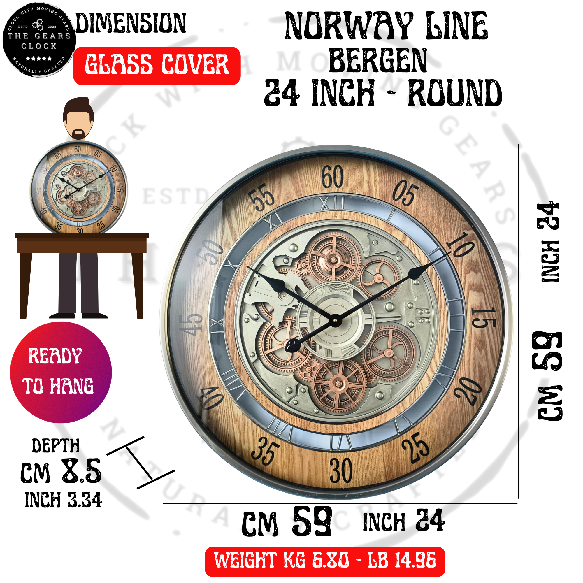 NORWAY LINE WALL CLOCK ROUND 24 INCH "BERGEN" BROWN-SILVER