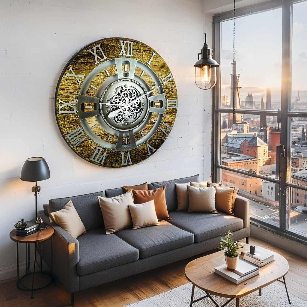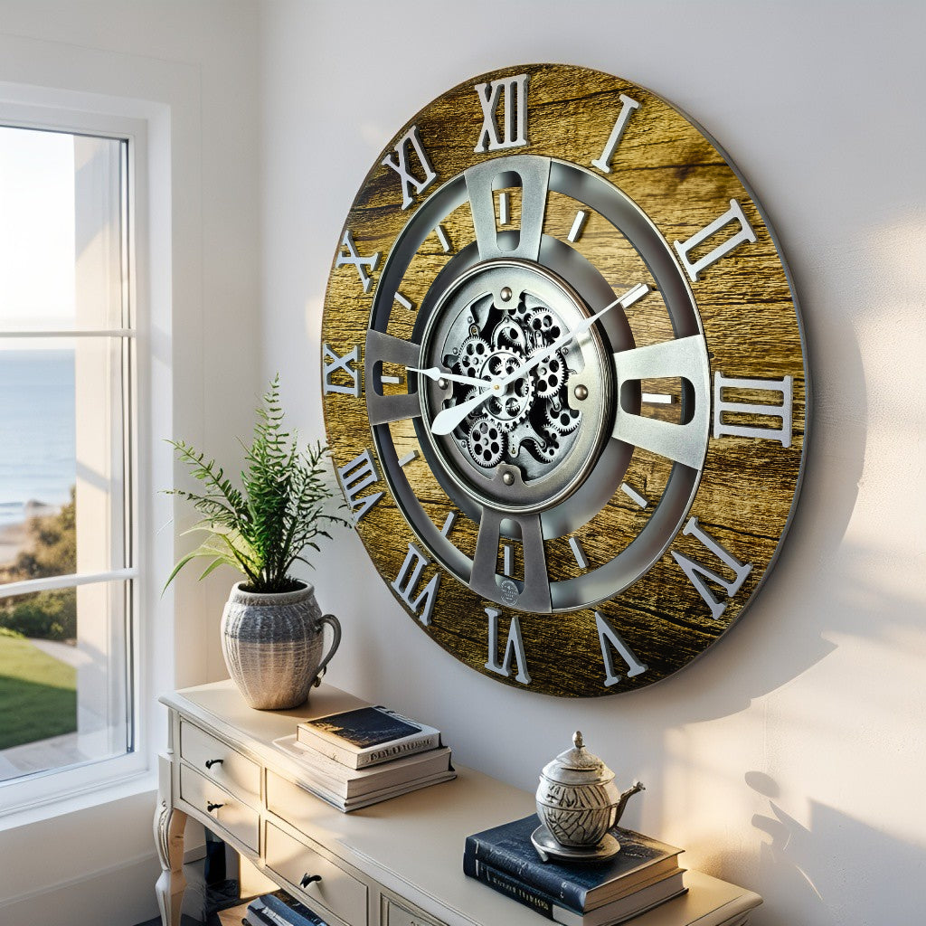 - PERFECT FOR ALL ROOMS | This unique Industrial vintage Steampunk Real Moving gears clock is the perfect clock to dress up a wall in your kitchen, living room, bedroom, bathroom, family room, den, office, Restaurant, Workplace......anywhere!