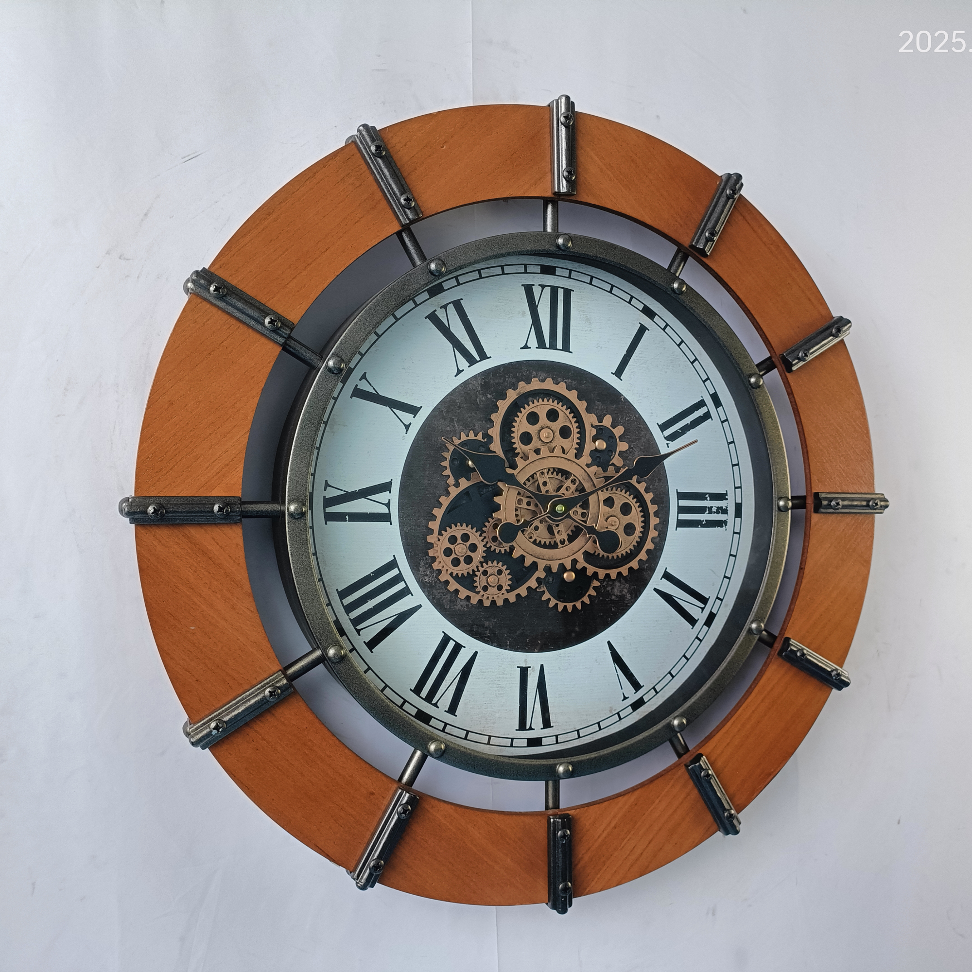 MATERIAL: metal bezel & hands; engineered-polymer gears; wood-look outer ring; high-resistance glass.