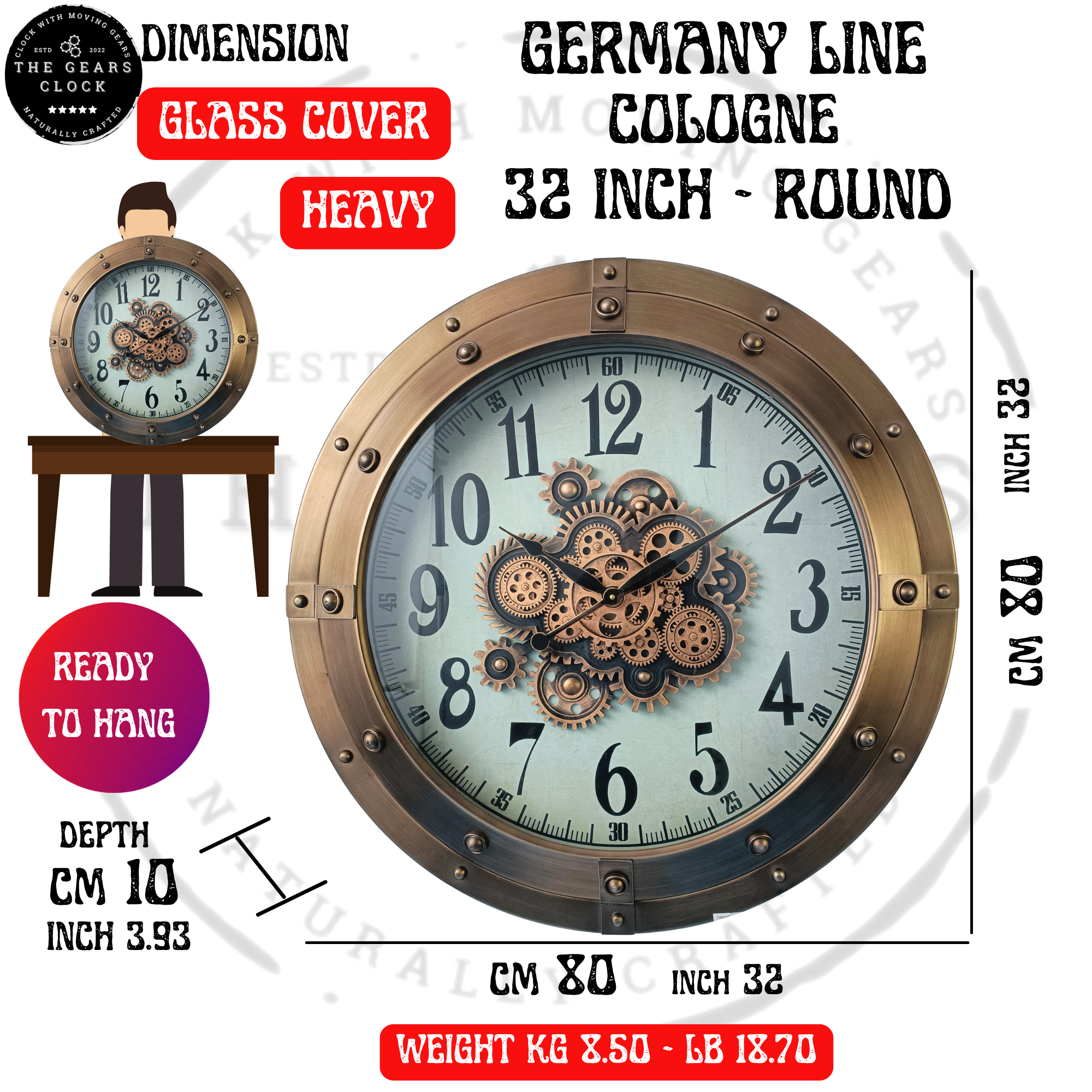 WALL Clock 32'' Round "COLOGNE" GERMAN LINE