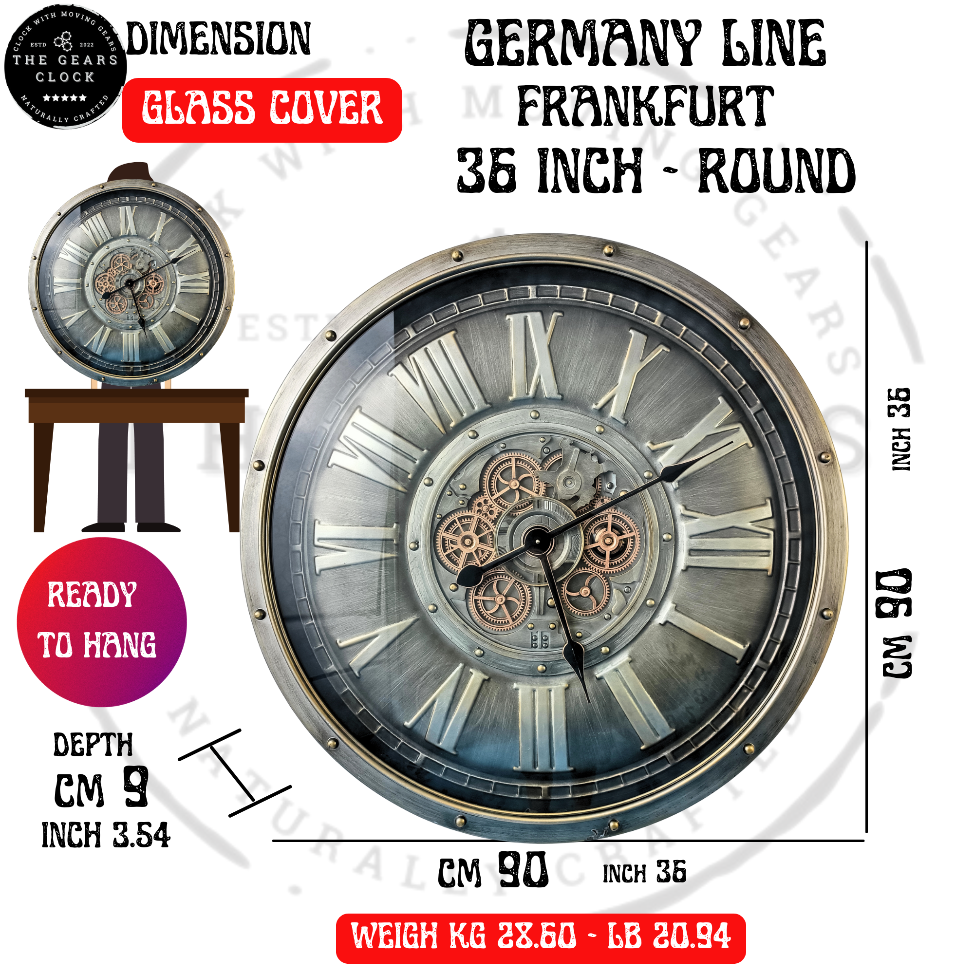 WALL Clock 36'' Round "FRANKFURT" GERMANY LINE