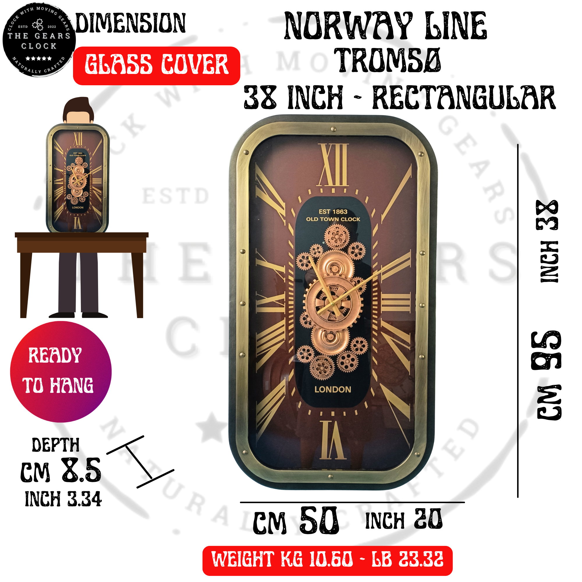 WALL Clock 36x20'' Rectangular "TROMSØ" NORWAY LINE