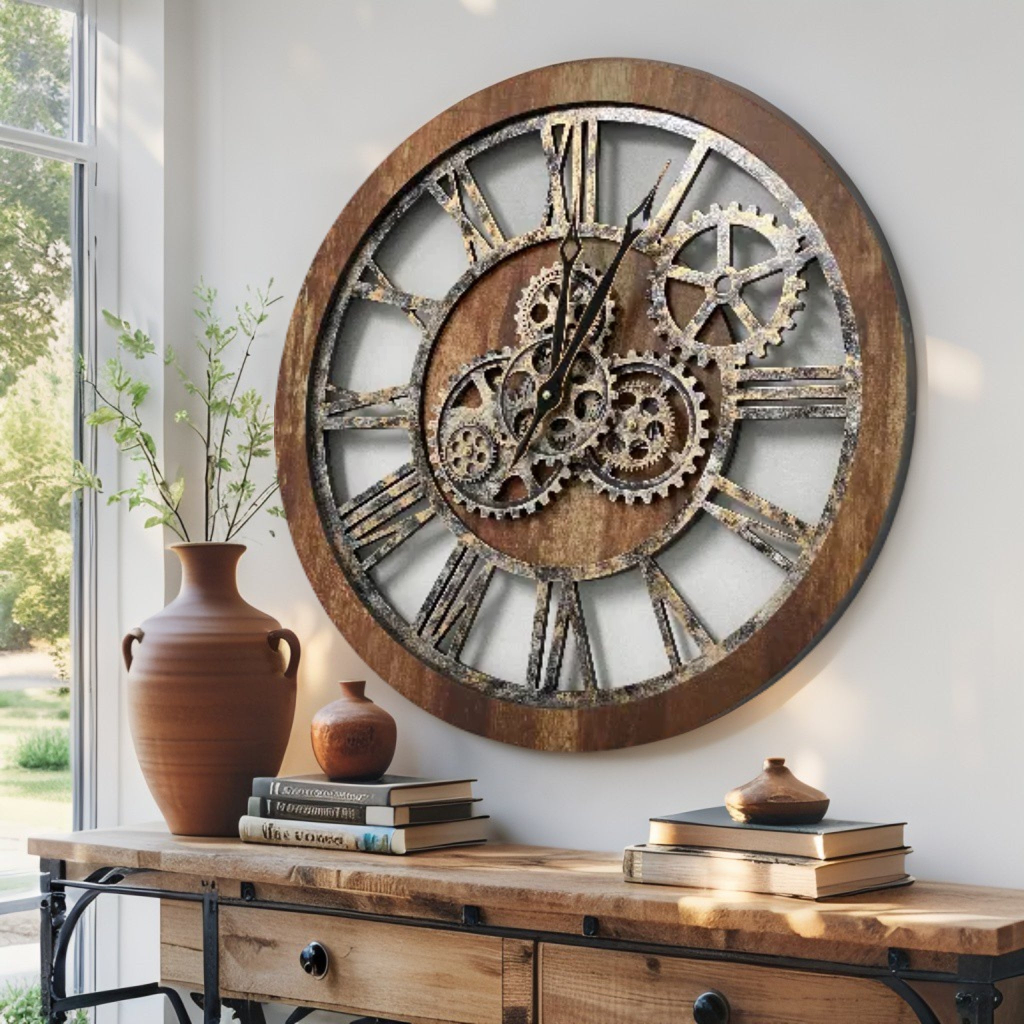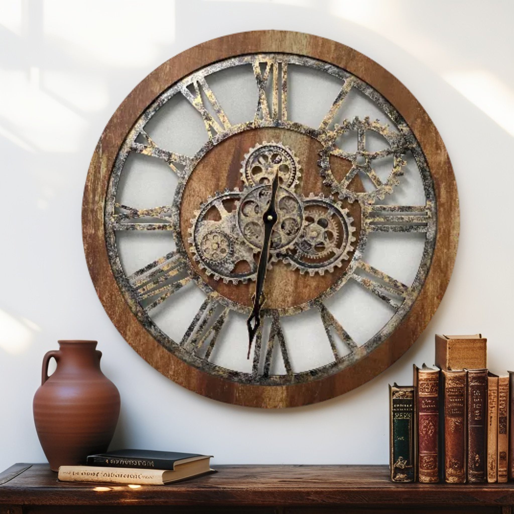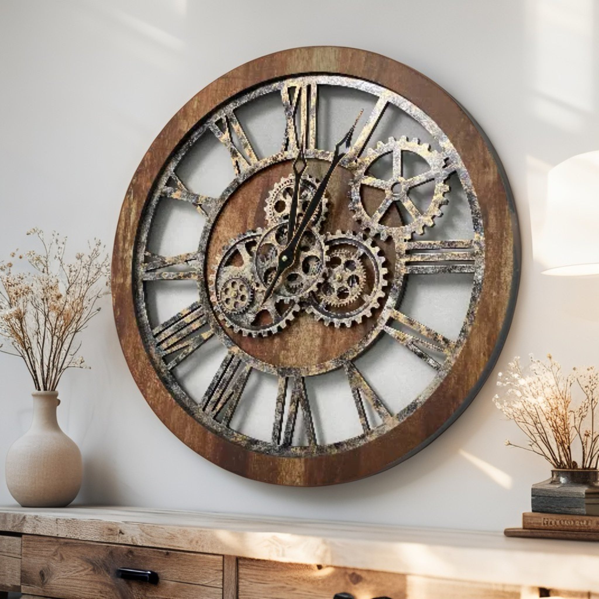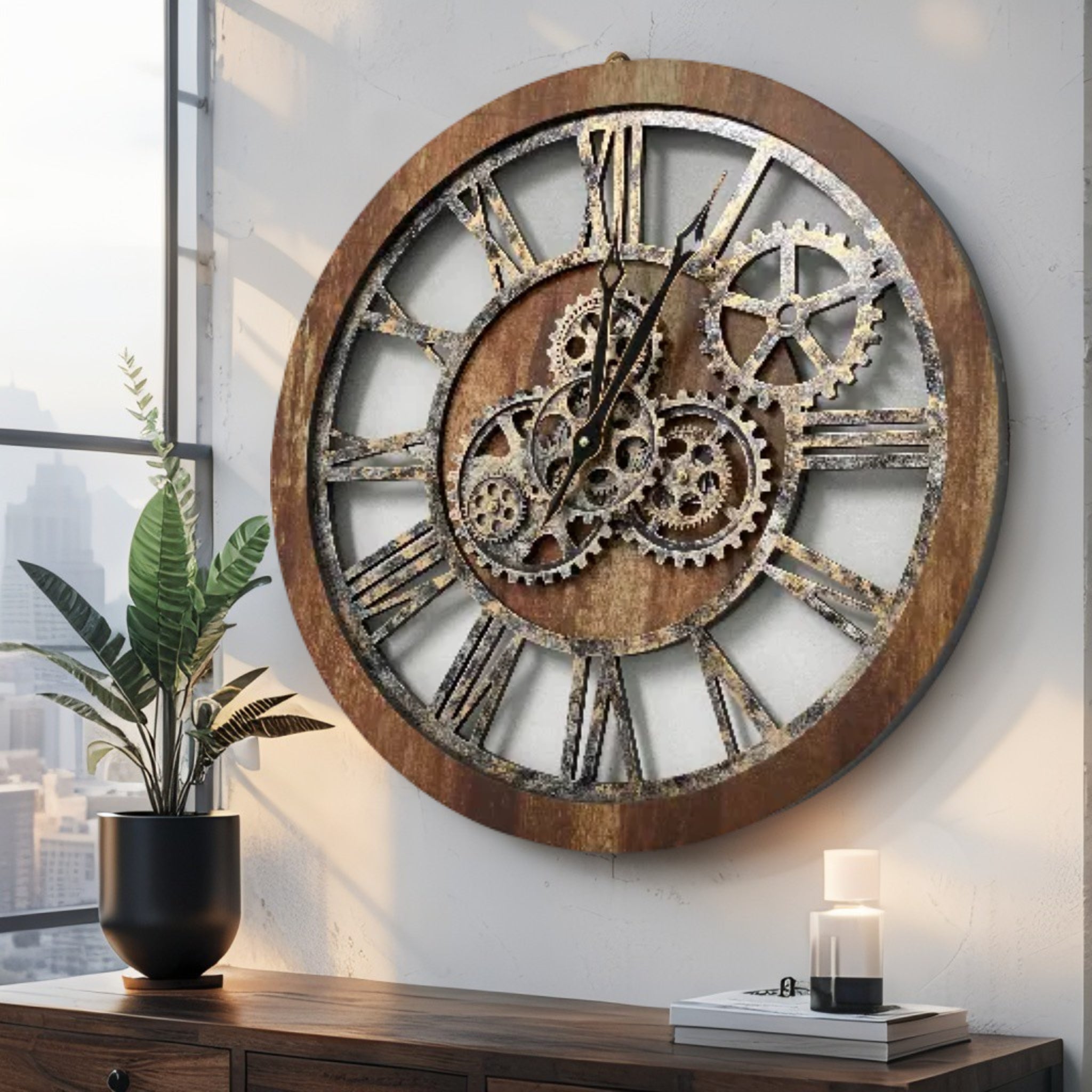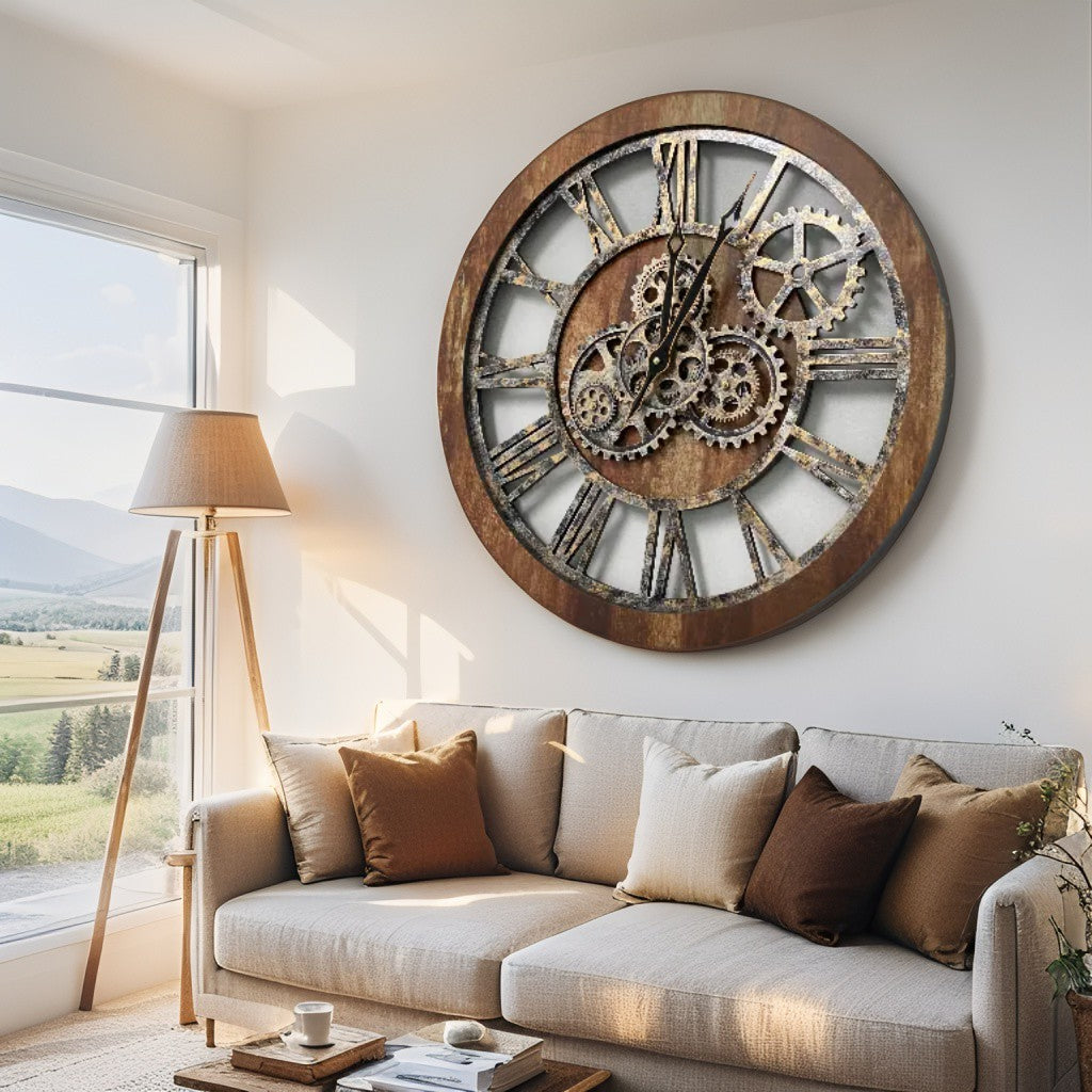 - PERFECT FOR ALL ROOMS | This unique Industrial vintage Steampunk Real Moving gears clock is the perfect clock to dress up a wall in your kitchen, living room, bedroom, bathroom, family room, den, office, Restaurant, Workplace......anywhere!